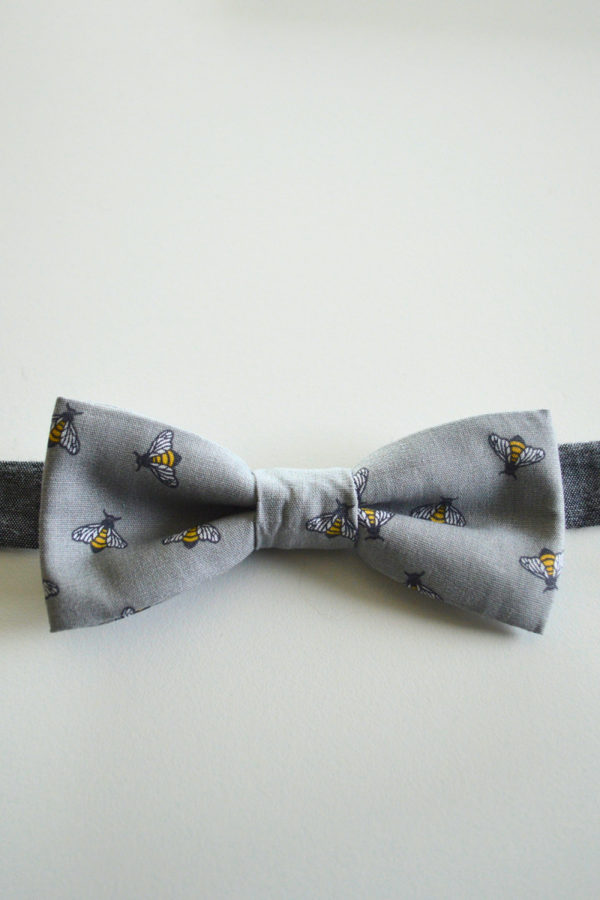 🇬🇧 Ready-to-wear bow tie from grey cotton with bee print.