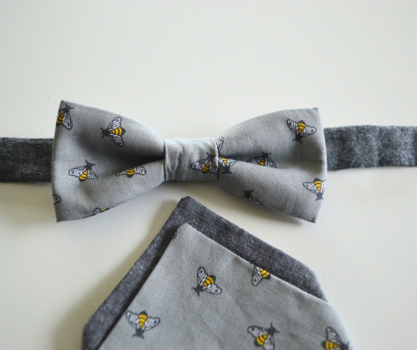 You can choose between the bow tie, and a gift set with a matching pocket square.