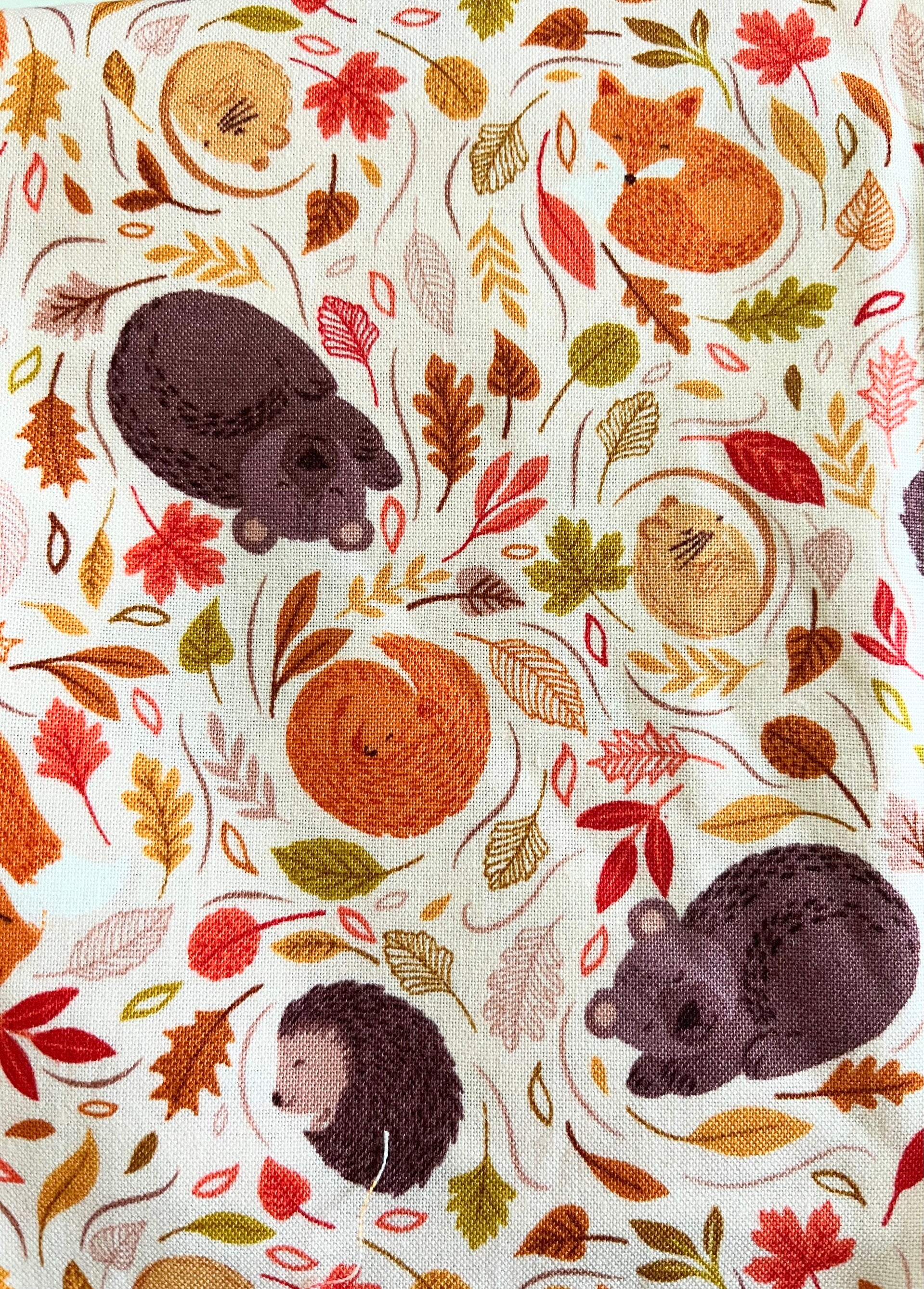Made from cotton with an autumnal print in different colours.